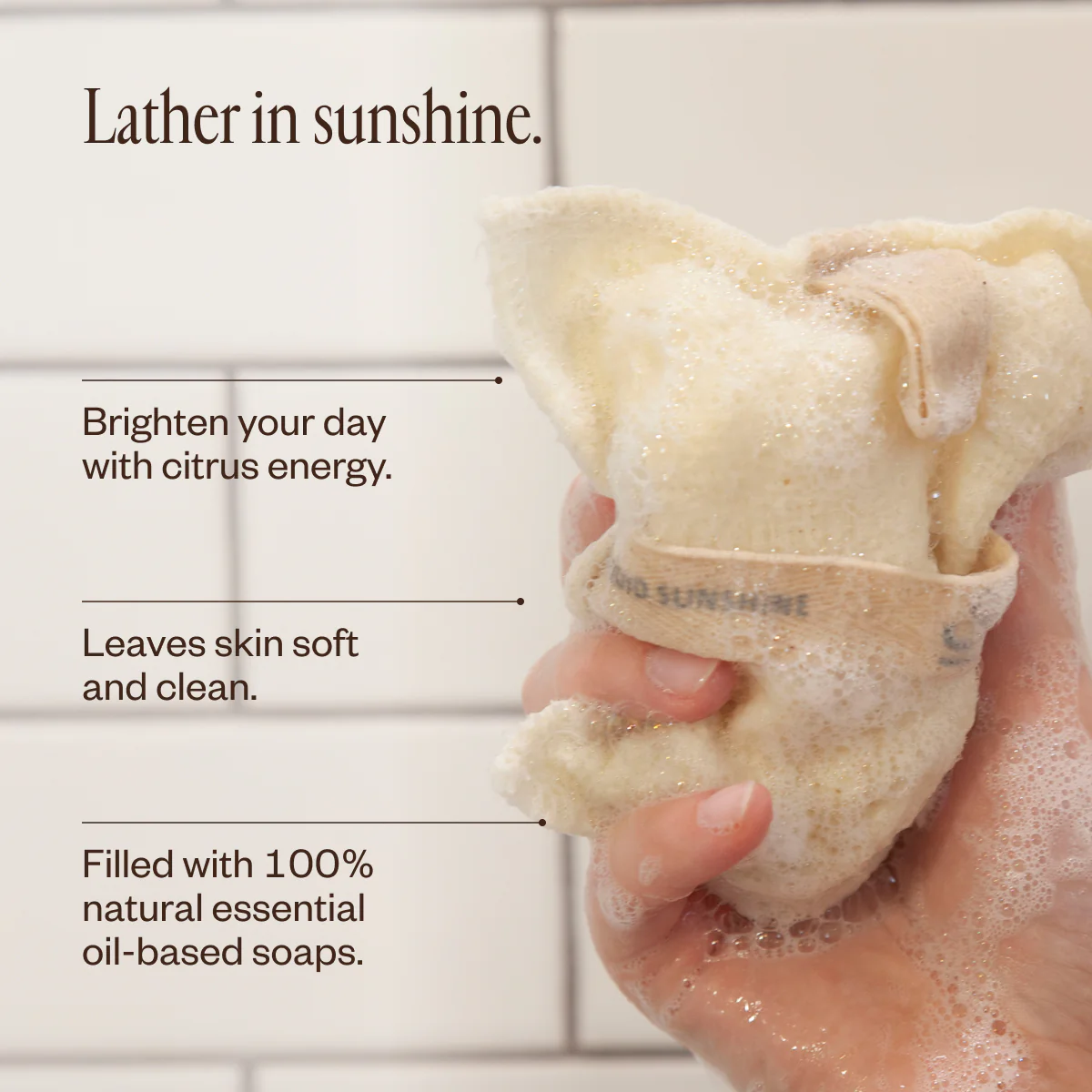 Our best-selling body care essential is a cleansing and gently exfoliating wash pad filled with zesty and uplifting natural soap pieces. Use as part of your daily body care routine to cleanse and nourish the skin.