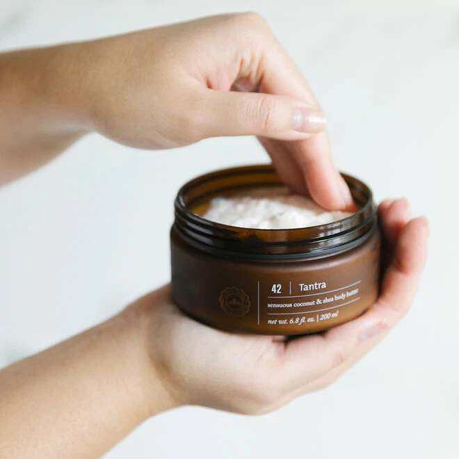 Experience nurturance and restoration for the whole body and mind with this warming and comforting body butter. This skin-softening formula is blended with sweet, earthy and spicy essential oils and replenishing butters of mango seed, cocoa seed and shea to nourish your skin's moisture barrier.